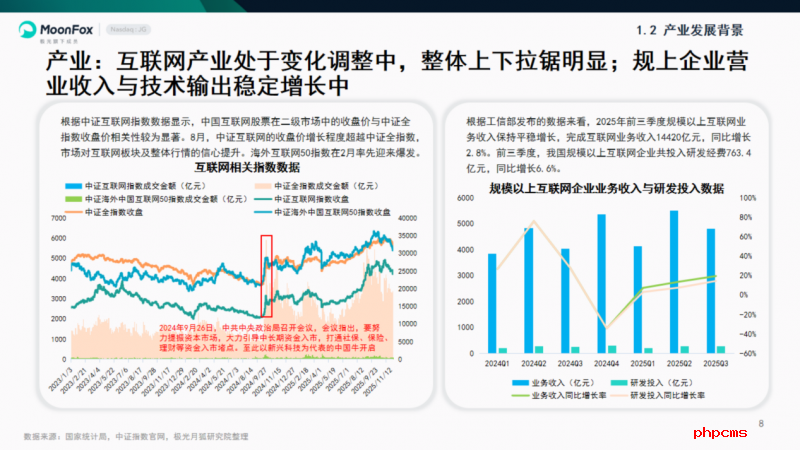 1.2.1 产业:互联网产业处于变化调整中,整体上下拉锯明显;规上企业营业收入与技术输出稳定增长中