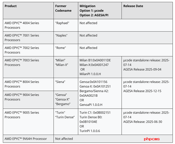 针对存在此低危漏洞的Zen 3/4/5架构的EPYC产品,AMD也早已发布解决措施,只需更新相应的固件版本即可。